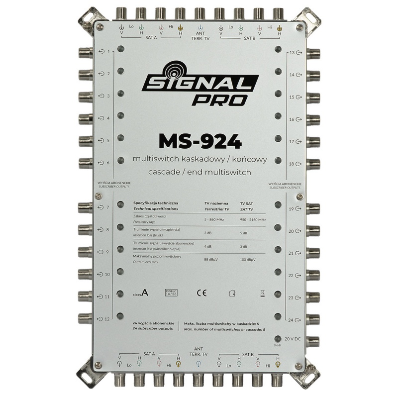 Multiswitch MS-924 SIGNAL PRO 9/24 jest przeznaczony do instalacji zbiorczych RTV-SAT.